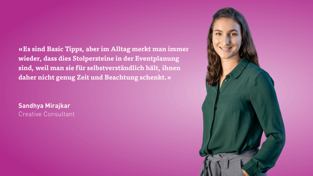 Oft sind es die kleinen, aber wichtigen Punkte auf der Eventagenda, welchen wir zu wenig Beachtung schenken oder denken, es bedarf keine Abstimmung. Genau diese aber können einen grossen Impact auf die gesamte Planung haben, und so einen Eventablauf ins Schwanken bringen.