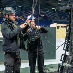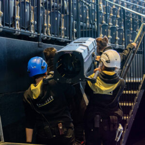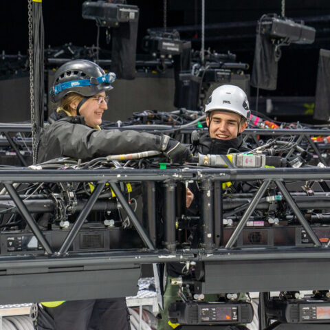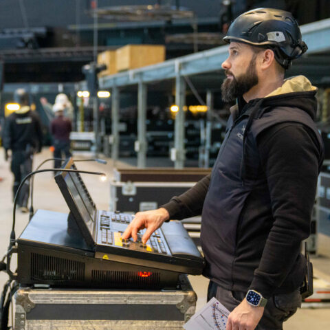 Donnerstag, 02.02.23, 18 Uhr. Das Publikum strömt bereits ins Hallenstadion. In zwei Stunden beginnt die Premiere von Art on Ice. Die gesamte Crew hat bereits einige lange und anstrengende Tage hinter sich. Davon ist allerdings nichts zu spüren. Die Vorfreude ist gross, die Konzentration hoch. «Dank der sorgfältigen Planung unserer Bereichsleiterin Meret Makkos im Vorfeld erwarte ich während der Show keine unerwarteten Überraschungen. Die gute Vorbereitung zahlt sich nun aus», meint Licht-Systemtechniker Marcel Meier zufrieden und richtet die letzten Lampen aus.