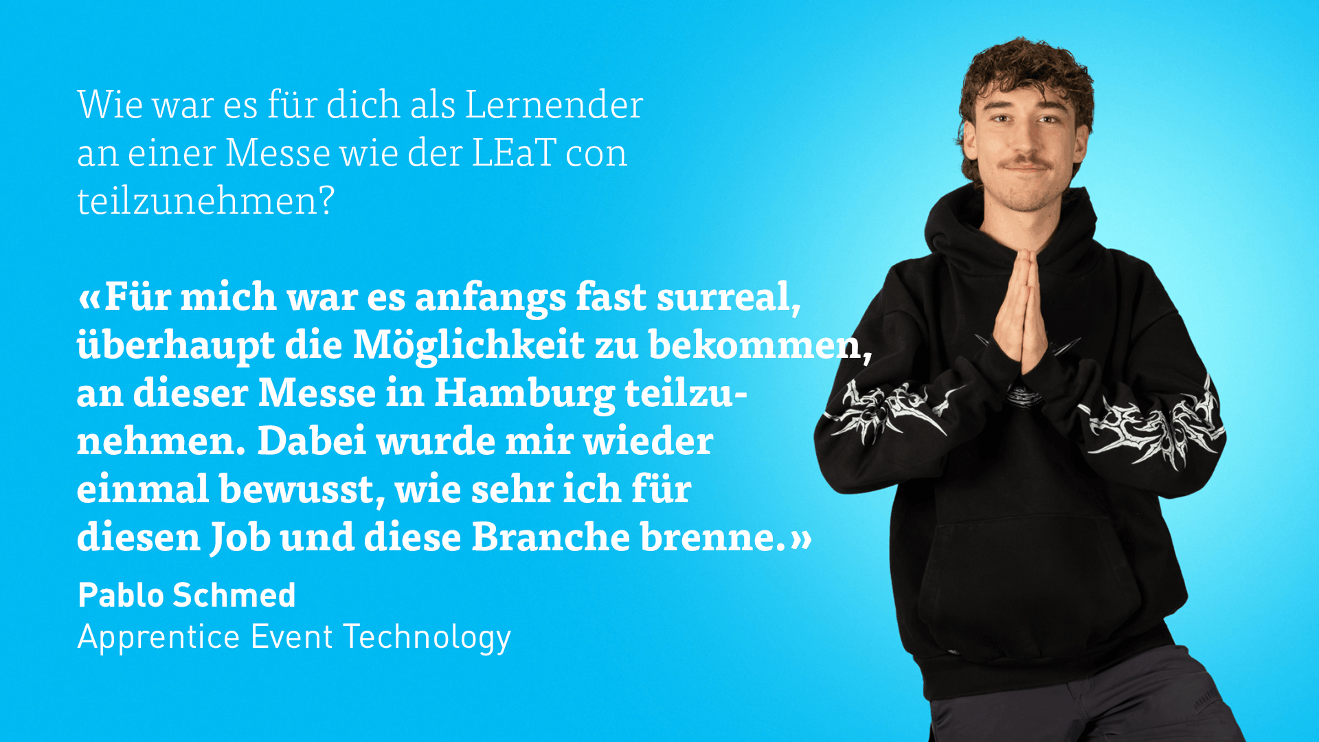 Gioia, Pablo und Timo waren mit auf der LEaT con. Alle drei haben im Sommer 2025 ihre Ausbildung bei Habegger als Veranstaltungsfachfrau oder -mann gestartet.