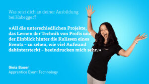 In meiner Rolle kümmere ich mich um die Kommunikation mit der Schule, den überbetrieblichen Kursen und den Lernenden selbst. Mir ist wichtig, dass jeder so sein kann, wie er ist, und dass wir uns intensiv mit den Individuen auseinandersetzen, während sie erwachsen werden. Aktuell betreue ich acht Lernende, zwei pro Lehrjahr, und begleite sie auf ihrem Weg, fachlich kompetent und selbstbewusst zu werden. Unsere Auszubildenden im Bereich Veranstaltungstechnik erhalten bei Habegger früh die Chance, hinter die Kulissen der Branche zu blicken – und das nicht nur im Betrieb, sondern auch auf Messen weltweit.