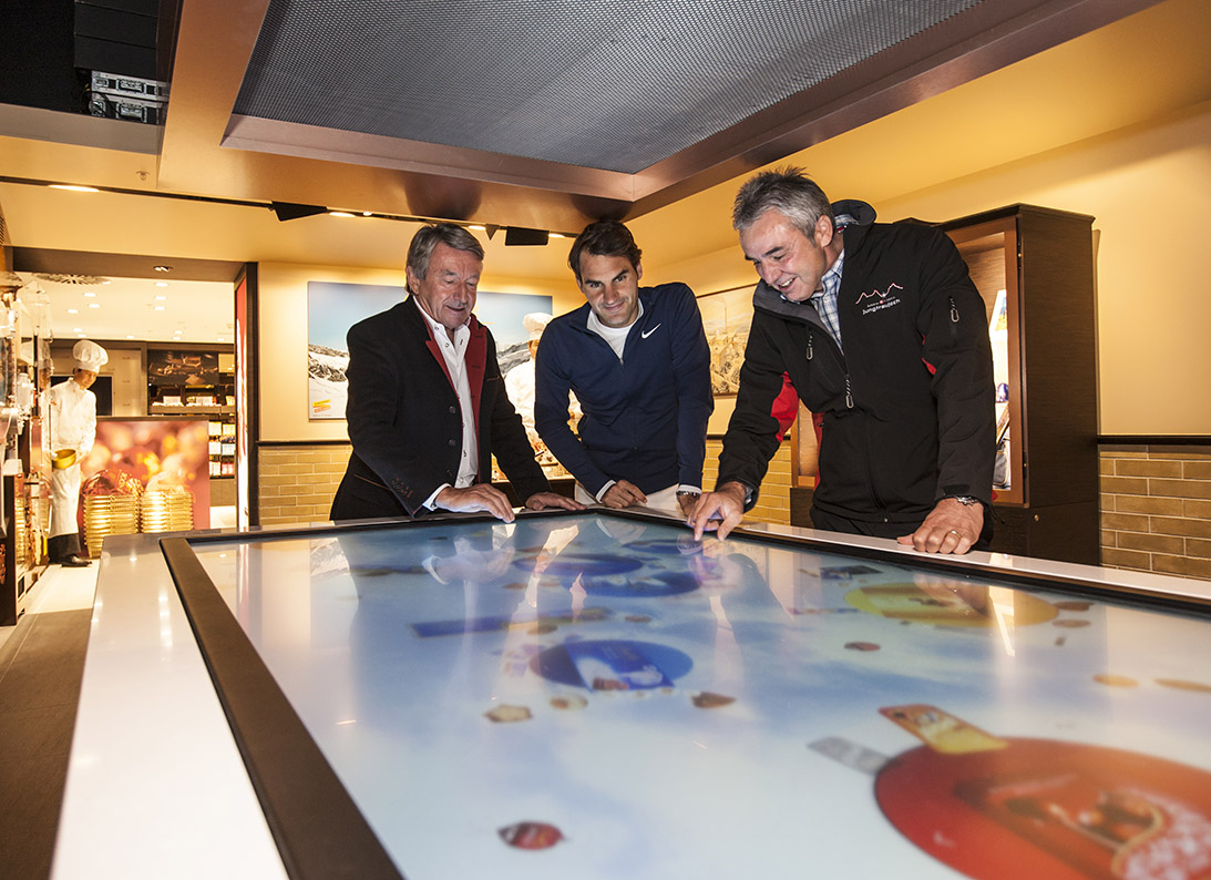 Das Exponat besteht aus drei 55-Zoll Touchscreens, die hochkant nebeneinander eine grosse interaktive Fläche bilden. Mittels iPad können sich die Gewinner für die Verlosung der Hauptpreise registrieren. Die erste Applikation ist ein Glücksrad. Sie zeigt den oberen Teil eines Glücksrades, welches der Besucher durch virtuelles Drehen in Bewegung setzen kann. Die zweite Applikation ist ein „Einarmiger Bandit“. Das Glücksspiel wird mittels Handbewegung in Bewegung gebracht. Wie bei einer Slot Machine im Casino setzen sich die mit Symbolen versehenen Walzen in Bewegung und stoppen selbstständig.