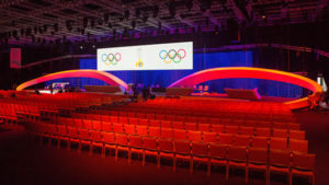 Bei diesem Projekt wurden wir vom IOC als Generalunternehmer beauftragt. Unser Team übernahmen die Verantwortung für das Projektmanagement, das Bühnendesign, Raumdesign und die Verantwortung für die Planung sowie Produktion der Eventbauten. Zusätzlich übernahmen wir die Eventtechnik von vier Messehallen und einen Board Room, koordinierten die Logistik aus Europa und Malaysia, führten ein internationales 200 Mann-Team und übernahmen die Ablaufregie und die Gestaltung und Produktion der medialen Kongress-Identity.