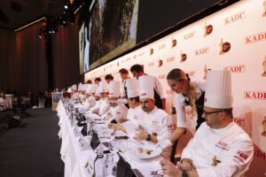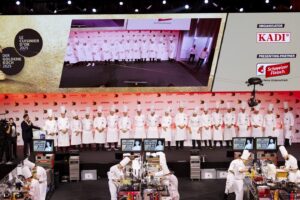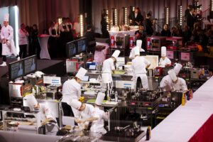 Bereits 2021 wurde das Event-Format pandemiebedingt vollständig als TV-Format umgesetzt, was uns die Möglichkeit gab, unsere Expertise im Broadcast-Bereich noch stärker auszuspielen. Die Entwicklung in Richtung Hybrid-Event begann jedoch schon 2016, als der Goldene Koch erstmals auch virtuell besucht werden konnte. Zentraler Punkt der digitalen Umsetzung war das KADI-TV-Studio mit Moderator Marco Fritsche, der zusammen mit Fachpersonen aus der Kochwelt ein spannendes TV-Programm gestaltete. Die wichtigsten Momente aus dem Hauptsaal wurden live übertragen, ergänzt durch Hintergrundberichte und Podiumsdiskussionen, die speziell von der Onlineredaktion aufbereitet wurden. Über Social Media konnten die Zuschauer direkt mit Marco Fritsche und seinen Gästen interagieren, was zu spontanen und überraschenden Momenten führte.