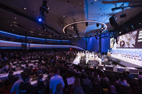 Seit 2018 setzen wir zudem auf innovative Technik, wie die Spidercam, die spektakuläre Vogelperspektiven ermöglicht. Auch die audiovisuellen Elemente, wie Filme, Musik und Präsentationen, werden von uns produziert. Die Ablaufregie im Hauptsaal und im TV-Studio sowie die Onlineredaktion liegen komplett in unserer Verantwortung. Wir gestalteten und realisierten ebenso das Bühnenbild, die Verkleidung der Küchen sowie die Rückwand.