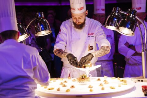 Der Goldene Koch ist der grösste Live-Kochevent der Schweiz und findet alle zwei bis drei Jahre im Kursaal Bern statt. Unter den Augen von 1’200 geladenen Gästen kreieren sechs Kandidaten in begrenzter Zeit zwei verschiedene Menus.