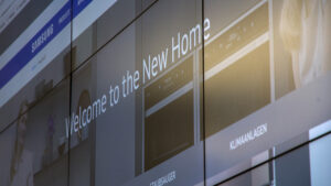 Die CBRE (Zürich) AG beauftragte Habegger, den Empfangsbereich ihres Gebäudes zu gestalten und zu realisieren. Das Design des Raumes sollte sich dabei an den Werten und dem Auftritt der Firma Samsung, der Hauptmieterin, orientieren.