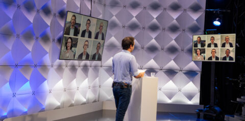 Ziel und Anforderung von ewz war es, einen Event zu kreieren, der informiert und in dem die Inhalte durch attraktive Grafik- und Film-Elemente veranschaulicht werden. Auf dieser Basis und nach einem umfangreichen Brainstorming entwickelte Habegger in engem Austausch mit ewz einen Studio-Event, bei dem ein Teil der Speaker remote zugeschaltet werden. Eine Woche vor der Durchführung verschärfte sich jedoch die «Corona-Lage», worauf auf ein komplett virtuelles Konzept umgeschwenkt wurde. Einzig der Moderator und die Technik-Crew waren im Studio anwesend, während sämtliche Redner einzeln zu Interviews oder synchron zur Diskussion zugeschaltet wurden. Über 800 ewz Mitarbeitende erlebten eine kurzweilige und innovative Informationsveranstaltung.