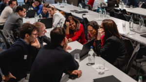 Für Helvetas haben wir ein umfassendes Erlebnis geschaffen, das sowohl für die Gäste vor Ort als auch den digitalen Teilnehmern einzigartige Momente schuf. Ein Höhepunkt des Programms war ein unterhaltsames digitales Spiel, in dem das Thema der Veranstaltung auf spielerische Art aufgegriffen wurde. Während die virtuellen Teilnehmer in speziellen Breakouträumen interagierten, organisierten sich die Teilnehmer vor Ort in kleinen Gruppen, um das Spiel gemeinsam zu erleben.