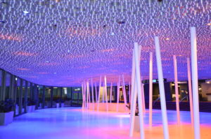 Habegger übernahm zudem das Planungsmandat für die topmoderne 2’000qm grosse Deckenbeleuchtung im Forum. Sie besteht aus rund 300 Vierfarb-LED-Leuchten für die Grundbeleuchtung und weiteren 350 Dreifarb-LED-Leuchten für die Akzentbeleuchtung. Die Decke kann auf Wunsch in einer gewünschten Farbe erstrahlen oder mit massgeschneiderten Licht-Choreographien bespielt werden. Die dafür notwendige komplexe Mediensteuerung wurde von Habegger programmiert und kann mit Hilfe eines portablen Touchpads bedient werden.