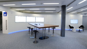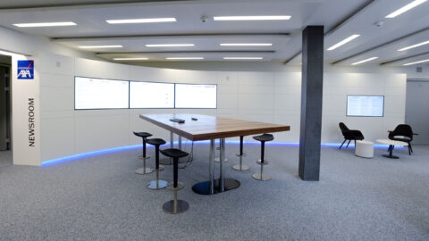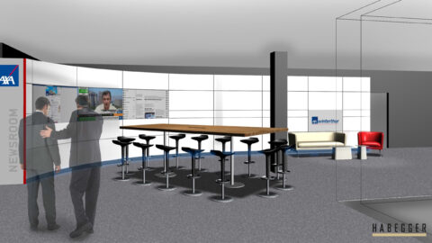 Der Newsroom wurde so konzipiert, dass dieser auch als Studiokulisse für Filmaufnahmen eingesetzt werden kann.