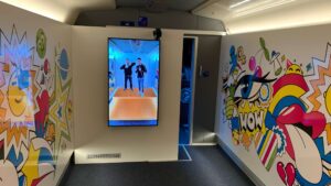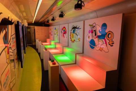 Das Ergebnis ist eine moderne und erlebnisreiche Lösung in Form eines neuen Waggons passend zum Thema Fake News, die überwiegend in der digitalen Funktionalität ausgerichtet ist: Wir gestalteten einen Selfie-Raum, die Generierung von Fake News mit dem dort geschossenen Klassenfoto sowie ein Quiz und Erklärvideos. Die Besucherinnen und Besucher im Alter von 11 bis 16 Jahren erhalten in drei verschiedenen Räumen Wissen über die Gefahren von Fake News und werden in einer erlebnisreichen Umgebung über Falschinformationen sensibilisiert.