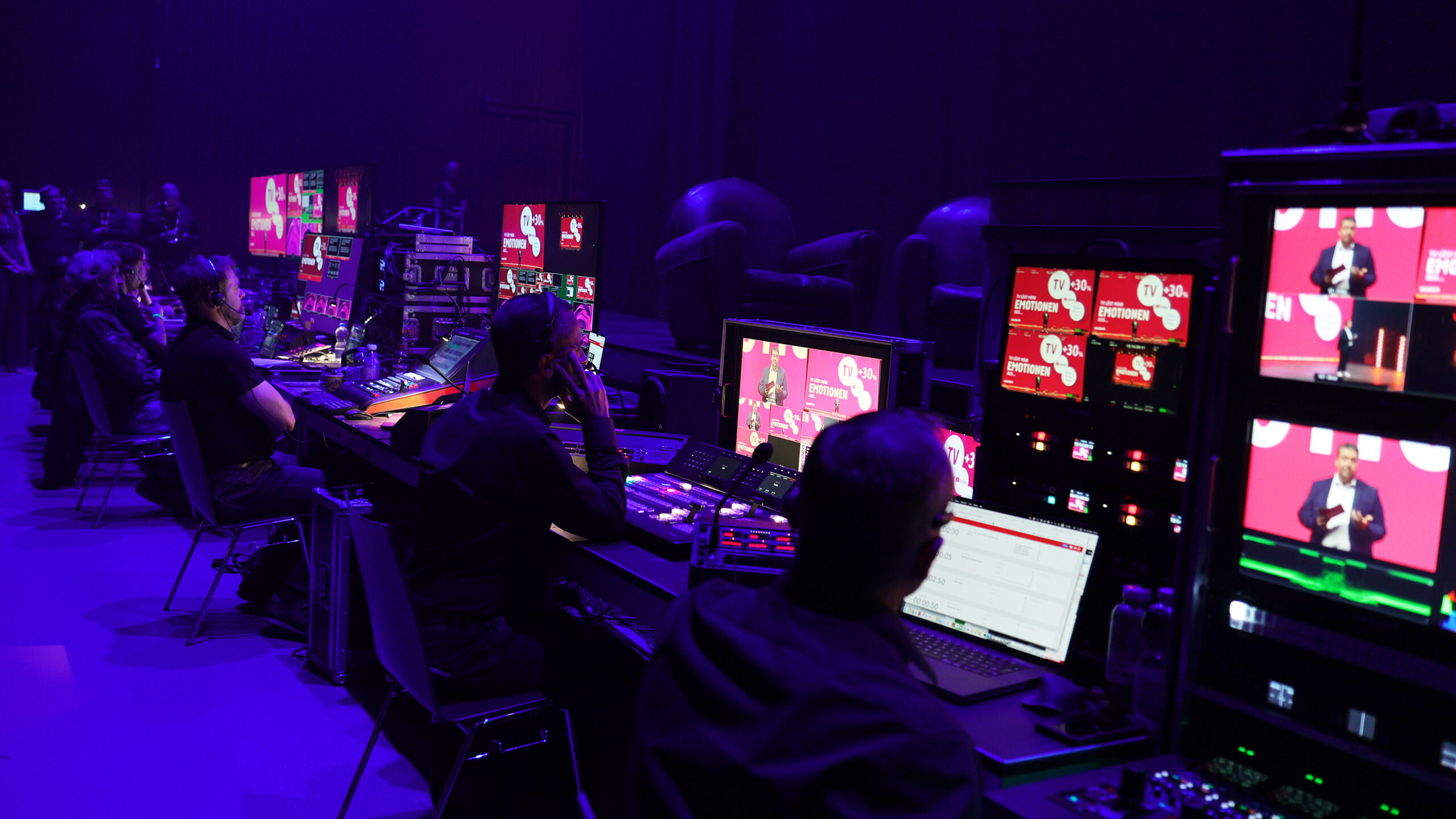 Die grösste Herausforderung bildete jedoch der Regieablauf, denn über 40 verschiedene Sender bedeuteten auch ebenso viele verschiedene Sets mit unterschiedlichen Inhalten und eigenen Technikanforderungen. Mittels minutiöser Planung und intensiver Absprache mit allen Beteiligten konnten wir diese Challenge optimal meistern.