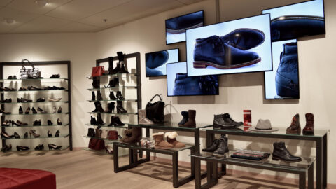 Anschliessend planten und installierten wir im Flagshipstore in der Migros City in Zürich eine «Patchwork Videowall». Diese besteht aus sechs unterschiedlich grossen Steglos-Screens. Der Inhalt, welcher auf der Patchwork-Wall gezeigt wird, wird auf den einzelnen Screens in verschiedenen Einstellungsgrössen ausgespielt. Der Content für die Video-Wall wird durch uns produziert und laufend erneuert.