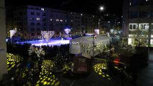 Die Europaallee präsentiert sich in der Weihnachtszeit in märchenhaftem Licht und bietet allen Besuchern ein festliches Vergnügen. Wir übernahmen die Ausführungsplanung und Montage der Projektoren, welche das Eisfeld und die Festhütten in ein „Wintermärli“ verwandeln.