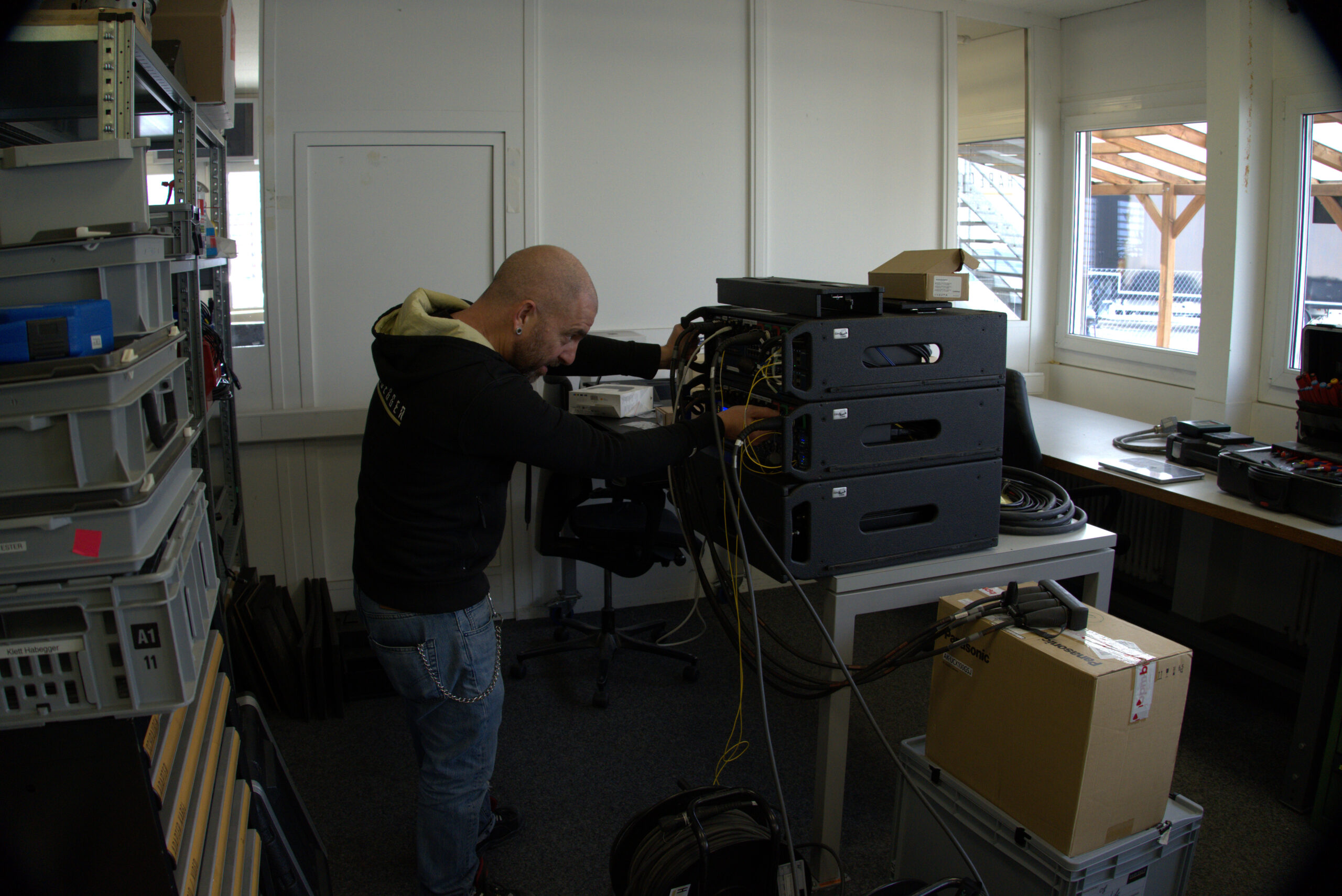 Heute ist Michaels Arbeitsalltag von festen Routinen geprägt. An seinen drei Arbeitstagen pro Woche, die ihm eine Teilzeitarbeit und damit eine gute Vereinbarkeit von Beruf und Privatleben ermöglichen, verschafft er sich zuerst einen Überblick: Was ist defekt? Was muss gewartet werden? Ein grosser Teil seiner Arbeit besteht darin, Geräte zu reparieren und instand zu halten. Besonders wichtig ist dabei der Unterhalt von komplexer Technik, beispielsweise bei unseren LED-Wänden von ROE, bei denen jederzeit alles einwandfrei funktionieren muss.