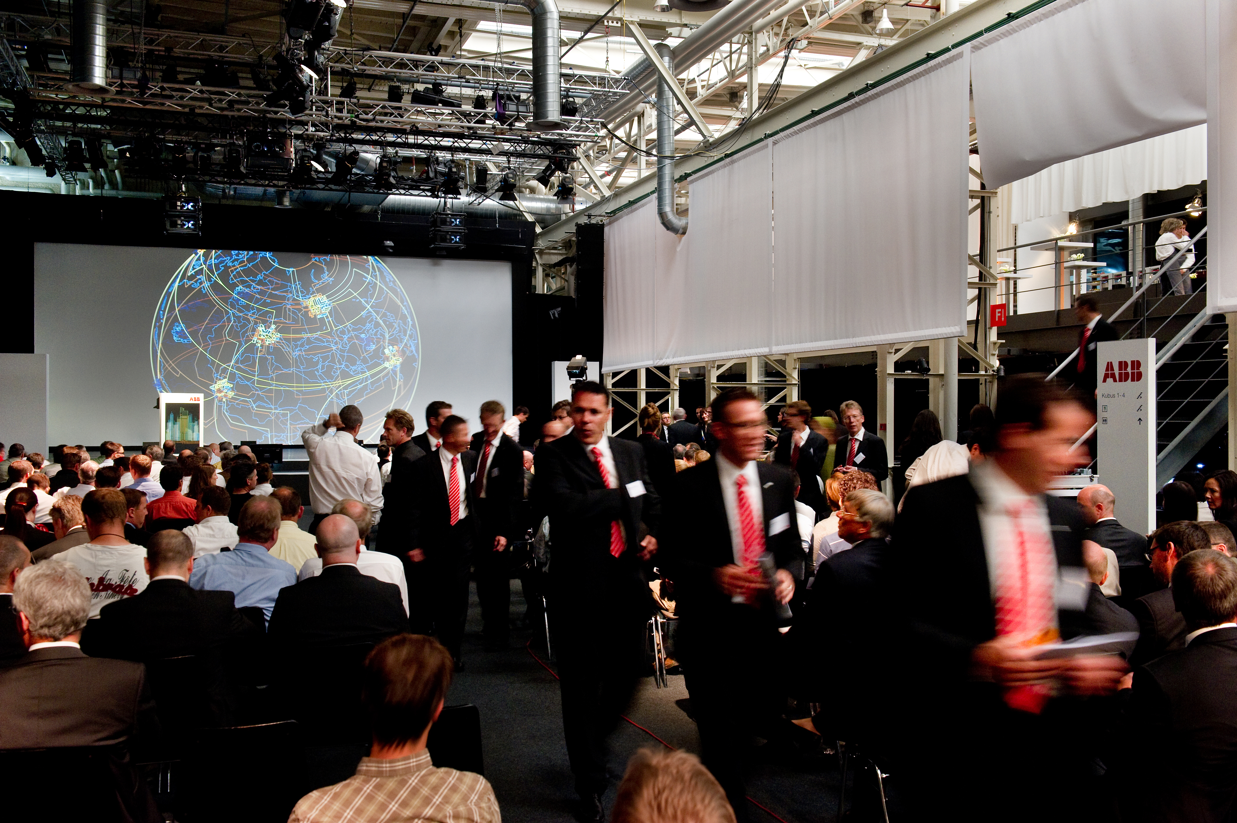 ABB Schweiz AG contracted us to carry out the scenographic, spatial and technical project development as well as the overall realisation of the event. An opening film and the staging of the ‘Kubus’ (TV screen cube) with the future projects were also creatively developed.