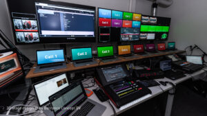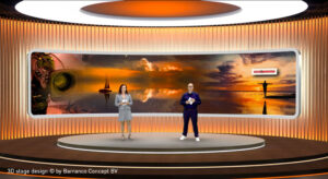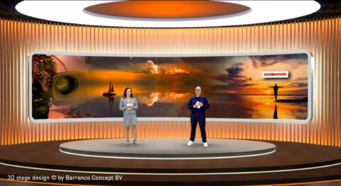 The design of the virtual environment, as well as the design and production of the content, was created by Barranco Concept BV. Habegger was responsible for all of the technical execution aspects and their project management. The greatest challenge was the smooth coordination of the digital signals. Up to six different, parallel live connections had to be coordinated and integrated into the virtual background using green screen technology. The result: a glitch-free conference that will remain a fond memory for the client and its employees for a long time to come.