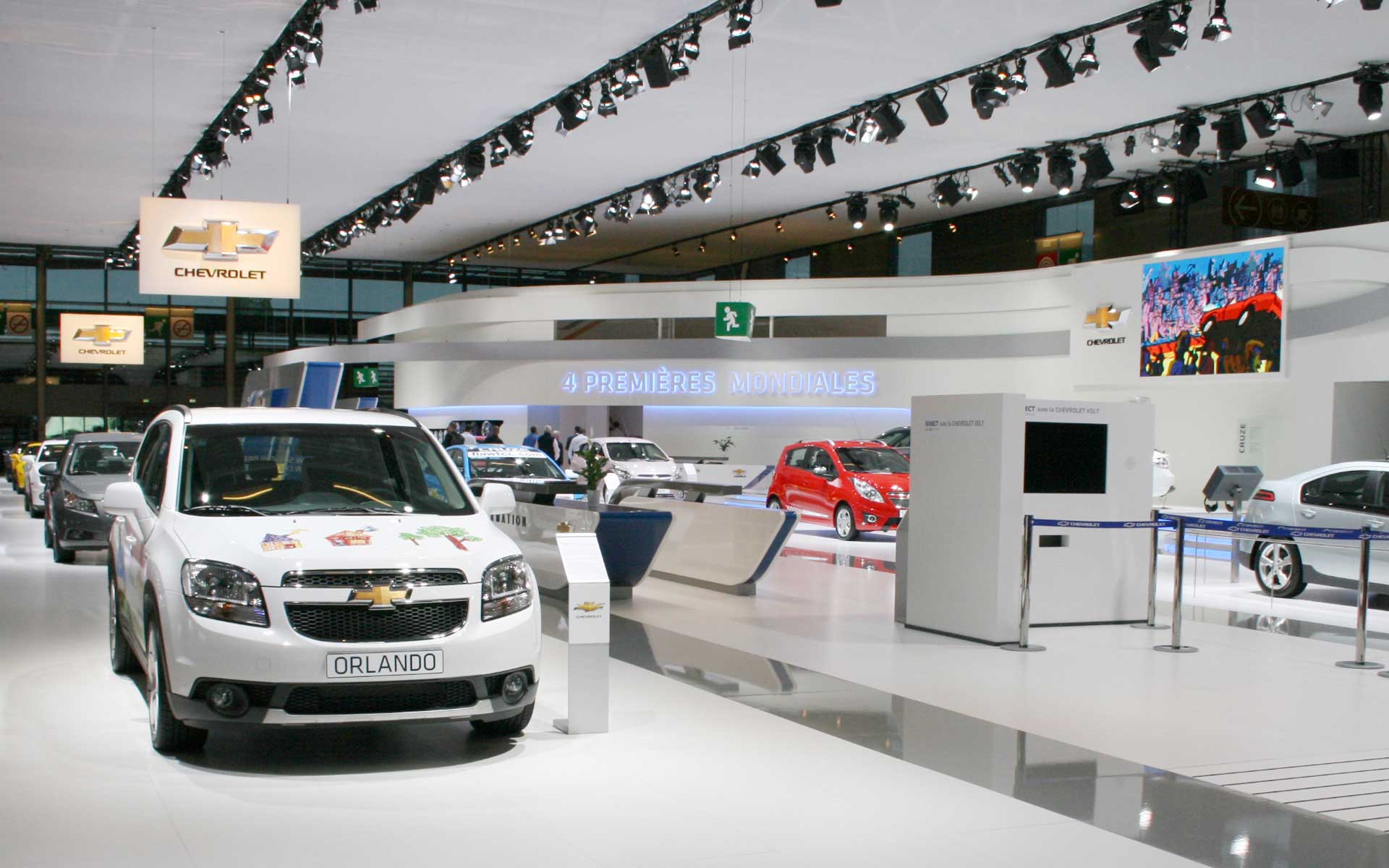 On behalf of Chevrolet, we took care of the technical planning, implementation and care of the booth. In addition, our area of responsibility included the light design for the booth and the cars, the programming of the touch screens, including the interactive content as well as the production and design of the video content.