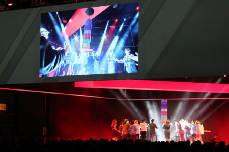 The technical challenge was to fulfill inclusion in all areas of the event, including a wheelchair-accessible stage, sign language moderation, and translation for the audience. In addition to sound reinforcement and lighting in the Hallenstadion foyer and stage, the installation of an induction loop was a special technical task. It allowed hearing aid users to directly receive the program sound, and with the orchestrated lighting, we created an impressive atmosphere.