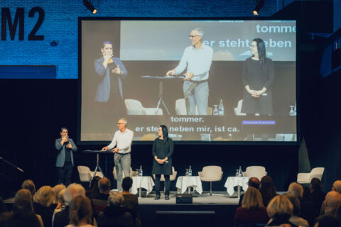 As the general contractor, we were responsible for the overall project management of the event, guiding the client from the initial inquiry through the concept to implementation, including communication with interpreters and the coordination of various suppliers. In collaboration with our client, we created layouts and visuals, the schedule, and projection design, orchestrating presentations, speakers, as well as sign language and written language interpreters.