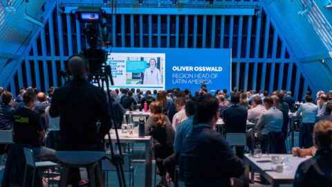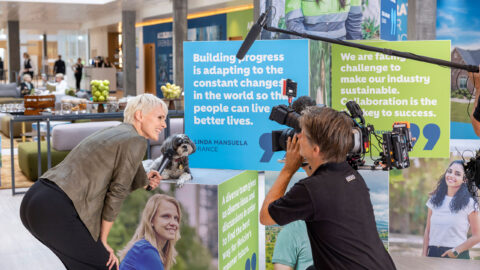 This year, the main event took place in the Circle at Zurich Airport. We equipped the foyer and the lobby of the Convention Center with prints, exhibits and LED screens in Holcim’s new brand look, thus creating a harmonious overall image. The client’s goal was to inspire the employees with a holistic scenography and well thought-out content and to make them active pioneers of the future strategy. For this purpose, we accompanied the meeting participants during the four-day event with up to four camera teams. We prepared the footage on site and staged it on the stage of the convention centre using video, LED, lighting and audio design.