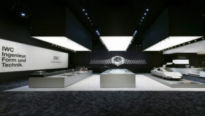 As an era of impressive design solutions, the 1970s were also reflected in the trade fair stand – a homage to the reduced and technical design trend of the time. A special highlight was the Mercedes Benz C 111-III, an experimental vehicle that stood out with its retro-futuristic design, underscoring the theme of IWC’s trade fair appearance, “DESIGN AND TECHNOLOGY”.
