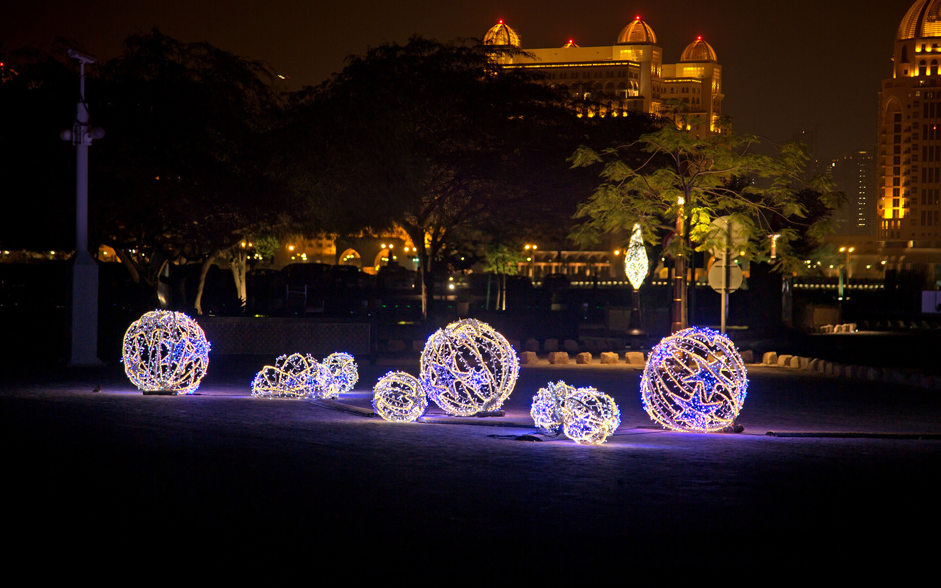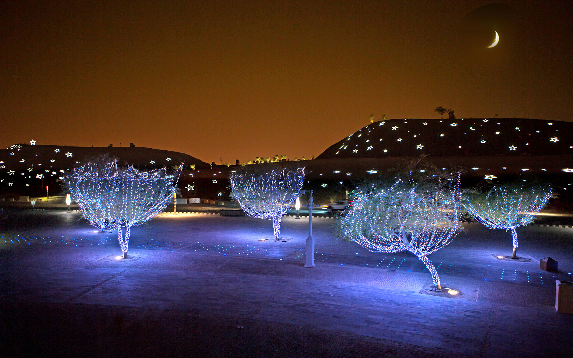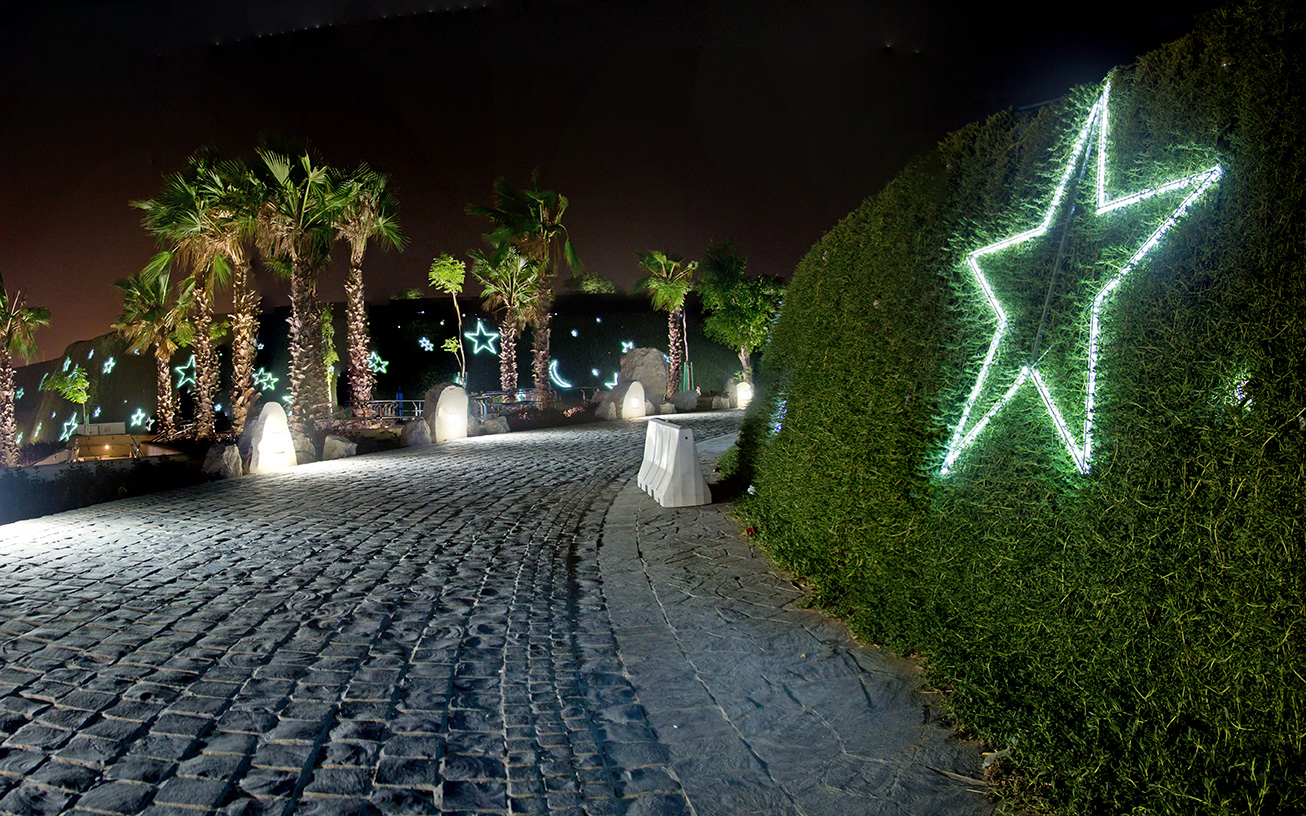 Festive lights for the celebrations for the Arab world’s fasting month of Ramadan in the district of Katara – we were able to carry out this unusual lighting project as the general contractor in the Arab nation of Qatar Over 1,700 stars, 42 km of cable, 3,000 lightning –effect lights, 65 moons and 360 chains of lights were installed in order to give a festive sparkle to the 4-week Muslim fasting festival of Ramadan.The Katara decorative lighting is another major project which we have carried out in the Arab nation of Qatar. We have been increasingly active in the Middle East since 2006. Its work there started with several projects on the occasion of the Asian Summer Games 2006 in Qatar. Today, we are already planning other projects in the region.