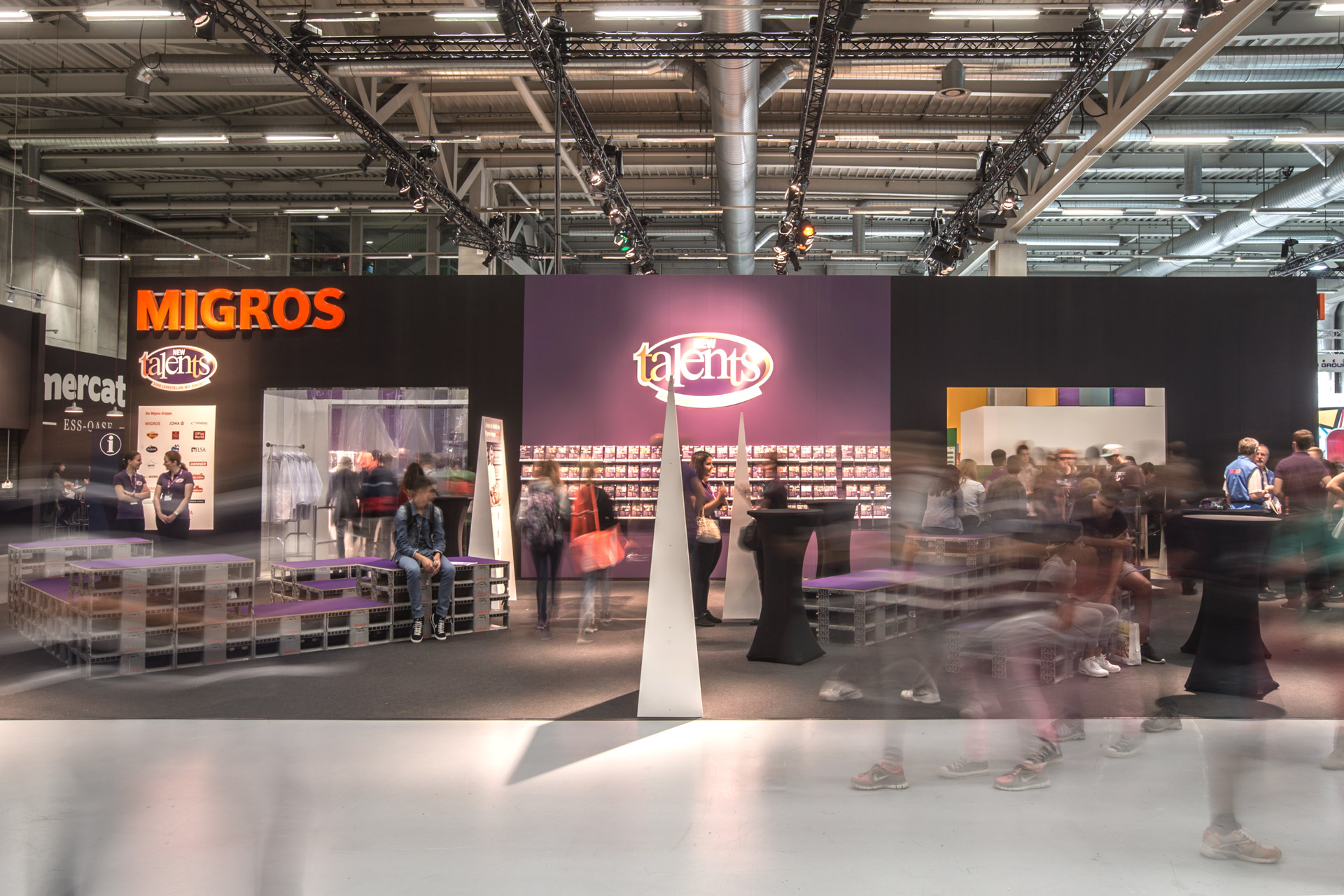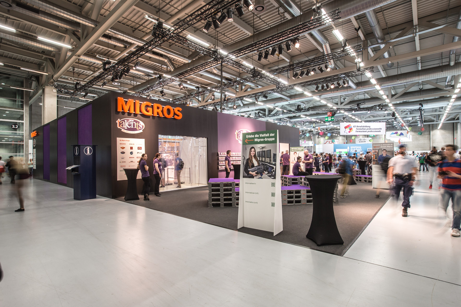 On 400 square metres the visitors of „SwissSkill Bern 2014“ were able to five into the world of Migros´ apprenticeships and experience 40 different occupations in 34 companies from the retail business, industry, logistics and service.