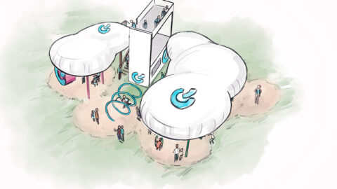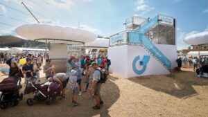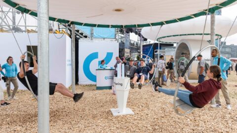 The three interactive elements were provided with a roof of “clouds” as protection from the weather – three air cushions were specially produced for this. The overall trade fair appearance was given the Primeo Energie branding, so that the brand presence was also shown off to best effect in aerial photos. Sustainability in construction and the choice of materials was important to the client, so some of the elements used had already been utilised at the Tour de Suisse 2022. Following the ESAF, the promotional stand was finally carefully dismantled so that a large proportion of the objects there could also be integrated into Primeo Energie’s future appearances.
