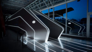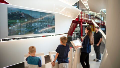 This and much more is shown in the new exhibition “SBB – Mobility of the Future” at the Swiss Museum of Transport. The journey from the past to the future takes place in a futuristic train in which mobility can be experienced in an entertaining way.