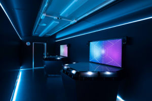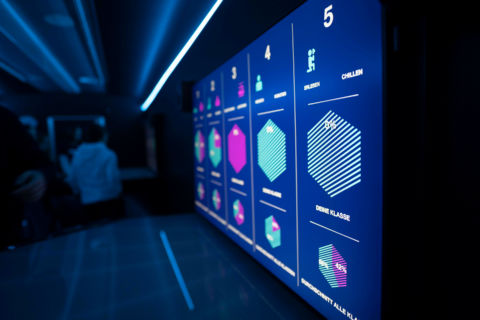 We equipped the “Mobility of the Future” module with the necessary technology. This included the integrations of a sound system, the various screens and the tables and targeted light installations.