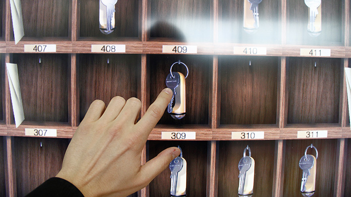 As an addition to their modular fair set, Schweiz Tourismus had the idea to have an interactive hotel reception in form of a virtual key hanger and authorised us with this project. Behind each key, you can find information on vacation spots and about what to do in Switzerland. They especially focused on user friendliness and the blending of function and design. All the data can be added via a USB stick and the new navigation points are created automatically. The simple plug and play solution ensures that everyone can use it. Last but not least: the 65-inch full HD screen lets the images shine and leaves a striking impression.