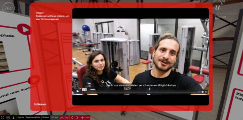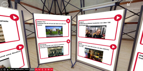 A virtual image of the university building was created for this purpose. Potential students could log on to this platform from the comfort of their own homes and explore the university campus on a 360° tour. Lecturers, who were connected via Zoom, provided information on the respective degree programmes and answered questions in chat rooms. Pre-produced videos with current students gave an insight into everyday campus life.