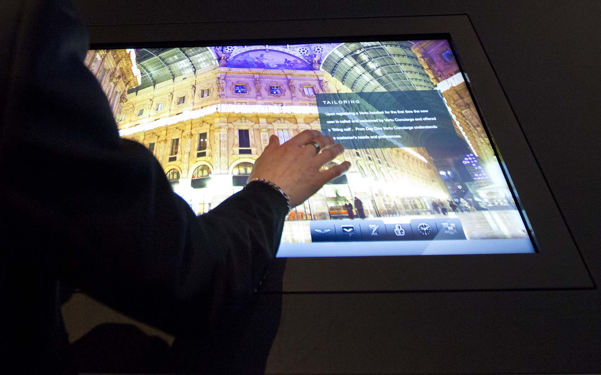 The World Watch and Jewellery Show in Basel is the international highlight of the branch. VERTU presented its luxury mobile telephones at this high-calibre exhibition. We worked with VERTU to develop a media communication concept for the appearance and managed the planning and implementation of the media elements for the exhibition stand. These included touchscreen applications which visitors could use to learn more about the brand, the model series and the company’s unique service. We were also able to carry out the exclusive programming and installation of the dealer presentation, which took place in one of the specially-constructed mini cinema halls, as well as plan and install the video and sound technology for the exhibition booth.