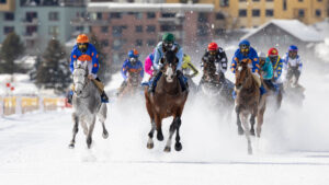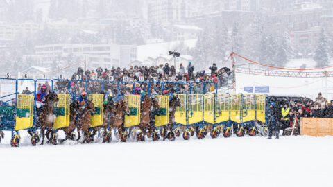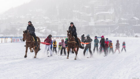The White Turf is an exclusive horse racing event that has been held annually on the frozen lake of St. Moritz since 1907. On three weekends in February, international jockeys compete with their thoroughbred horses on the prepared racecourse. The setting is a 130,000m2 event area with upscale catering and musical entertainment. This unique event in the Engadine mountains attracts around 30,000 visitors every year.