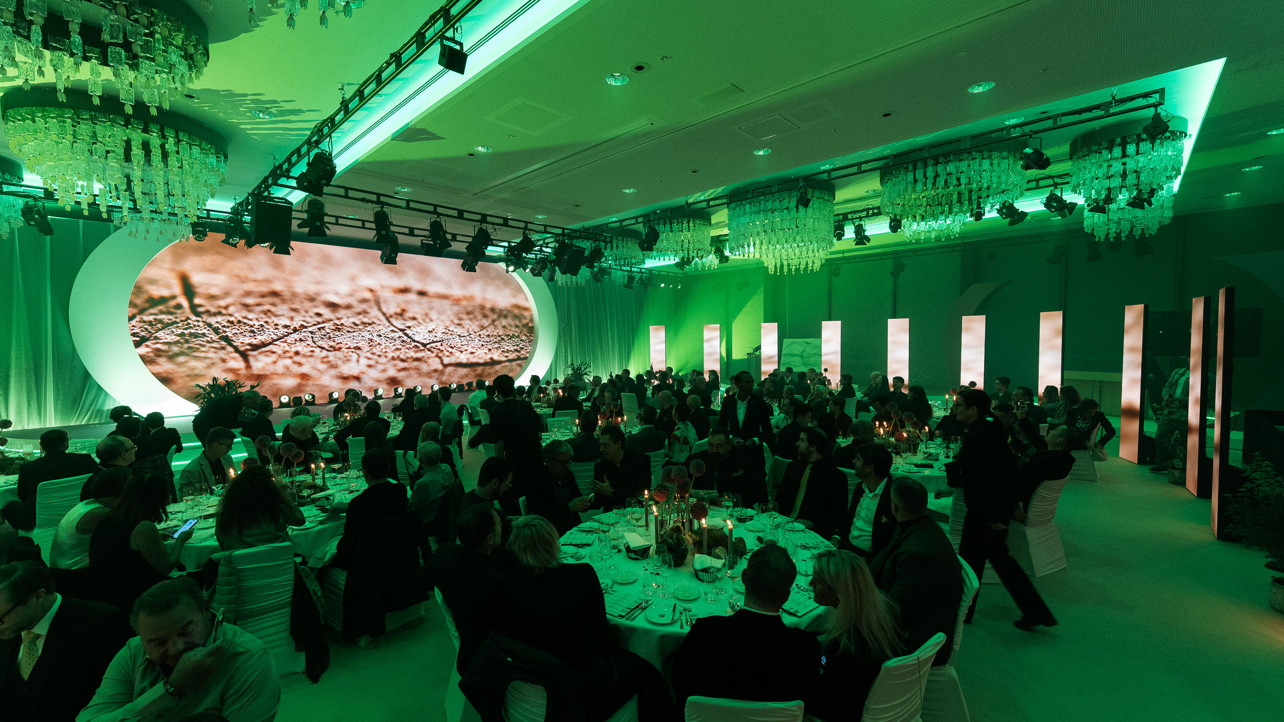Le programme combinait ateliers stratégiques, conférences et présentations, ainsi qu’une intervention inspirante de l’alpiniste et sportif extrême Dani Arnold. Le défi majeur : transformer entièrement la salle de bal entre la conférence de l’après-midi et le dîner de gala, en seulement deux heures – un test réussi grâce à notre flexibilité et à une coordination parfaitement rodée.