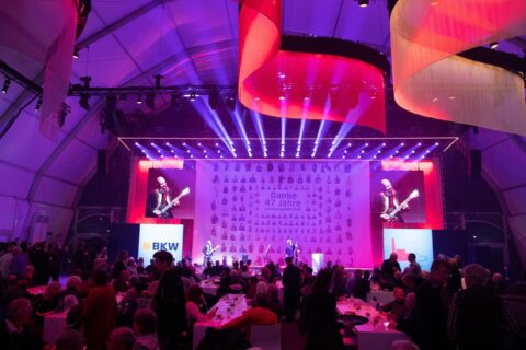 Le fonctionnement de la centrale nucléaire Mühleberg (KKM) a cessé en décembre 2019 après 47 ans de service. Nous avons mis en place de A à Z cet évènement médiatique et chargé d’histoire au nom de la BKW. Pour la donneuse d’ordre, il était très important de mettre l’accent sur l’avancée positive vers une politique énergétique tournée vers le futur. Parallèlement, cela devait aussi être une bonne occasion de tenir compte du sentiment d’au revoir et de deuil des collaborateurs. En étroite de collaboration avec la BKW, Habegger a élaboré un concept qui a pris en considération les différents intérêts et sentiments de tous les participants. Avec quatre évènements sur deux jours, nous avons pu créer un cadre adapté.
