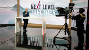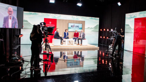 Le fascinant décor de la scène a aussi assuré une ambiance réussie: la configuration studio à LED existante était complétée en parfaite harmonie avec le branding de Victorinox par un espace lounge moderne pour les interviews ainsi qu’une scène de présentation. Lors du Global Launch Meeting, nous n’avons pas été seulement responsables de la mise en place du décor de scène et de la diffusion en streaming fluide mais également de l’ensemble du déroulement de l’évènement.