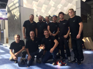 Malgré le montage rapide de seulement 15 heures, nous avons réussi à monter un stand de haute qualité. L‘ensemble du stand a été livré dans des caisses de transport sur mesure et a pu être assemblé très rapidement grâce au système « Plug&Play ». Le montage, y compris le transport sur le salon, a été réalisé en seulement 12 heures.